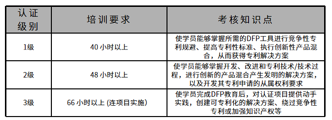 此外,提供DFP專利性認(rèn)證,主要分為以下三個級別: