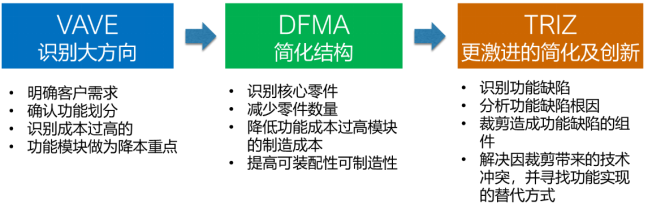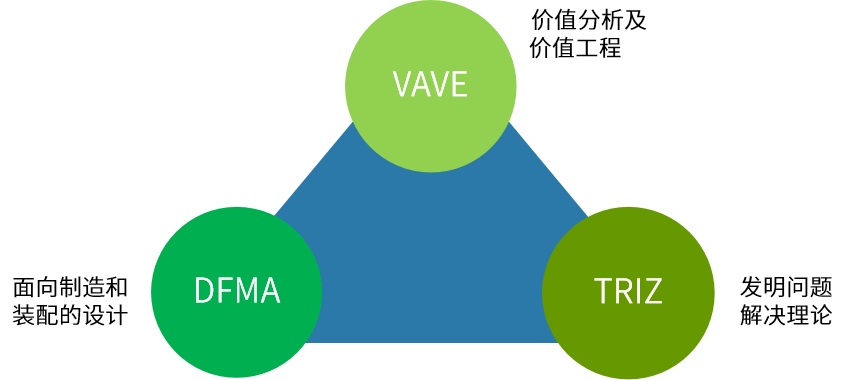 讓我們直奔主題,先上一組英文縮寫:DFMA?、VAVE、TRIZ,這些就是設(shè)計(jì)降本方法鐵三角。